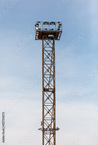 A tall metal structure with lights on top