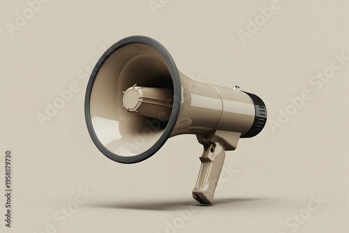megaphone, speaker, amplifier, loudspeaker, communication, device, audio, equipment, sound, voice, amplification, public, address, system, amplified, speech, announcement, visual, object, single, 1, solo, only, product, studio, shot, closeup, still, life, photorealistic, render, three-dimensional, model, plastic, beige