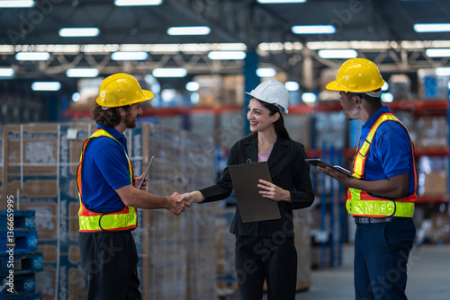communication, inventory, partnership, together, men at work, safety, employee, workshop, supervisor, male, person, storehouse, technician, work, man, storage, occupation, workplace, collaboration, colleague, industrial, people, manager, business, factory, industry, warehouse, teamwork, logistic, transportation, team, distribution, loading, package, group, engineer, technology, construction, helmet, job, equipment, manufacturing, caucasian, stacking, hands up, middle-aged, staff, vest