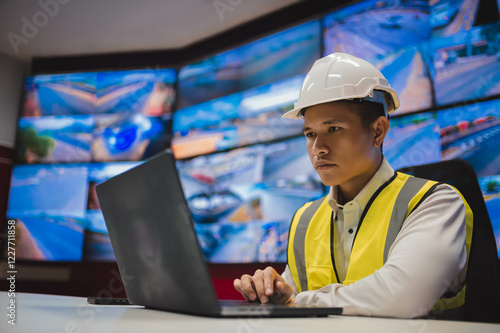 photo, security, surveillance, technology, horizontal, indoor, computer monitor, occupation, people, safety, working, office, man, watching, control, computer, protection, one person, guarding, connection, datum, industry, expertise, male, desk, crime, order, prevention, engineer, skill, looking, service, standing, development, manager, sitting, responsibility, complexity, technician, examining, criminal, artificial intelligence, traffic, person, factory, footage, hard hat, indoor