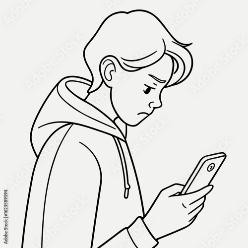 teenage, teenage, phone, upset, sad, vector, illustration, person, children