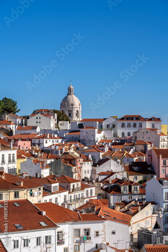 lisboa, portugal, architecture, church, dome, white building, city landscape, europa, historic, landmark, terracotta, rooftop, urban, capital city, travel, tour tourism, religion, historical building, scenic, destination, mediterranean, traditional, neighbourhood, sunny, blue skies, summer, exterior, facades, culture, history, sightseeing, famous place, vacation, beautiful, heritage, portuguese, telephoto, outdoors, building, no people