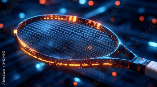 tennis, racket, glowing, net, blue, background, orange, futuristic, light, technically, experiencing, sport, black, game, concept, match, line, play, ball, competition, space, illustration, abstract, tournament, equipment, design, leisure, red, court, neon, bright, green, championship, geometric, modern, score, digital, recreation, action, illumination, stadium, arena, racquet, building, closeup, science, shape, object, training