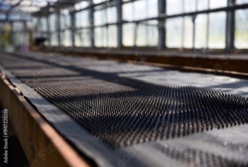 industrial, conveyer, belt, rubber, mat, texture, pattern, surface, metal, structure, flooring, material, dark, grey, black, resin, textured, grid, hexagonal, industrial design, manufacturing, production, machinery, equipment, warehouse, factory, floor, surface texture, building, interior, construction
