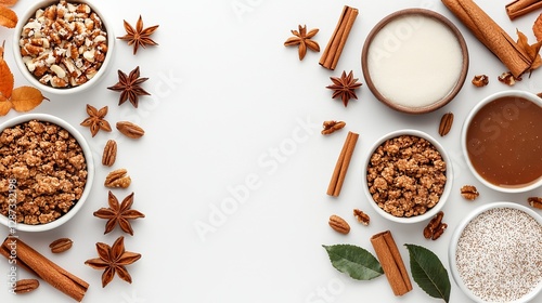 a thanksgiving dessert spread featuring caramel apple crisp in a baking dish, top-down view, rich colors, realistic detail, isolated on white background