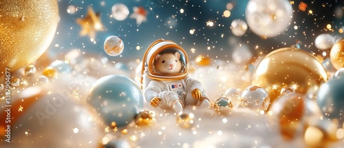 hamster, astronaut, space, christmas, ornament, holiday, cute, adorable, festive, winter, gold, silver, blue, white, sparkle, glistering, magical, whimsical, joyful, celebration, cosmos, galaxy, star, light, shining, glowing, fluffy, cloud, cosmic, new year, wonder, dreamy, fantastic, surreal, art, digital, illustration, three-dimensional, render, artwork