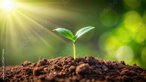 A Tiny Seedling Reaches for Sunlight in Rich Earth, Symbolizing New Growth and the Promise of a Bountiful Future