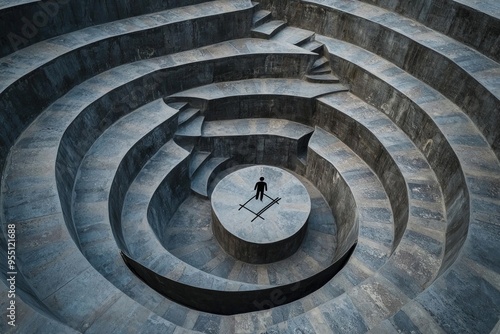 architecture, building, stair, staircase, stickman, icon, concept, human, figure, dark, isolated, labyrinth, labyrinth, solution, level, top, aerial, center, interior