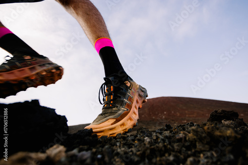 action, active, adventure, agility, body part, challenge, closeup, daylight, dynamic, effort, endurance, energy, environment, exercise, foot, fitness, ground, landscape, motion, movement, nature, path, physical, rocky, runner, scenery, speed, sport, stamina, stride, terrain, training, traverse, volcano, physical exercise