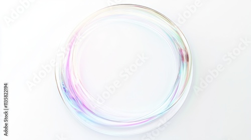 A transparent annular holographic frame with soft pastel tones and shimmering edges, floating on a bright white background
