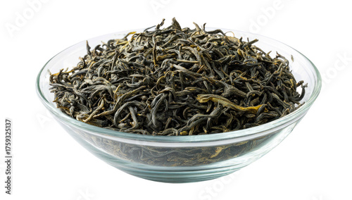 tea, leaf, bowl, transparent, green, heap, dark, loose, herbal, drink, organic, food, beverage, natural, healthy, fresh, closeup, isolated, aroma, favor, caffeine, antioxidant, wellness, well-being, remedy, calming, ritual, tradition, culture, china, asia, leaf, dried, dry, texture, surface, pattern, full, macro, detail, botanical, medicative, tasty, delicious, fragrant, epicure, cookery, product