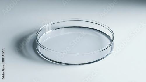 A transparent petri dish with visible edges, displayed on a pure white surface in a side profile view