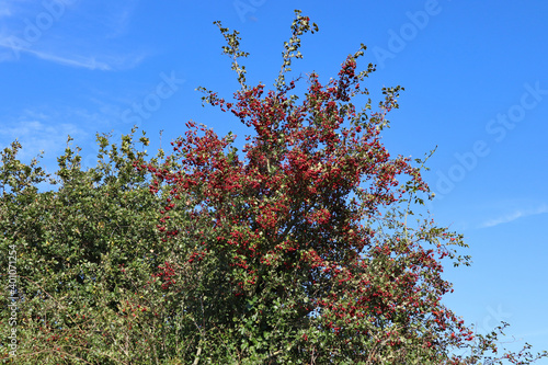 wild, berry, growth, copious, red, food, flora, heavy, abundant, hanging, organic, colourful, colourful, bough, sky, blue, outside, healthy, bright, leaf, berry, wood, mature, rural, shrub, lot, farming, ripe, plant, tree, nature, natural, green, season, beautiful, tree branch, winter, fruit, bush, sweet, fresh, tasty, bunch, juicy, vitamin, foliage, shrubbery, many, leaf, harvest