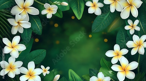 frame, border, tropical, flower, floral, frangipani, plumeria, leaf, green, white, yellow, nature, background, summer, exotic, blossom, bloom, beauty, design, decoration, graphic, illustration, pattern, botanical, plant, foliage, lush, vibrant, bright, abstract, blur, bokeh, sunlight, vacation, paradise, spa, wellness, romantic, love, peace, serenity, happiness, joy, fresh, elegant, beautiful, soft