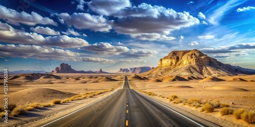 A vast expanse of endless desert road stretching into the horizon