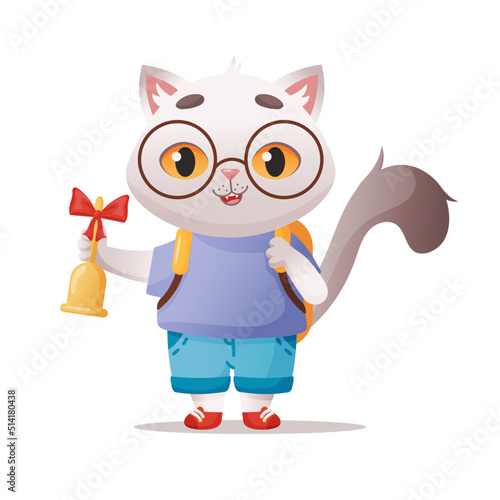 cat, animal, cartoon, vector, kitten, pet, illustration, cute, cat, drawing, art, domestic, funny, character, fun, animal, design, isolated, bell, ribbon, red, backpack, adorable, cheerful, school, pupil, children, tail, goggles, t-shirt, short, smile, learn, autumn, grade