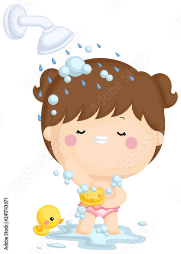 illustration, clip art, vector, cute, children, children, girl, children, children, cartoon, graphic, water, childhood, clean, habit, fun, foam, health, healthy, person, toddler, activity, daily, young, joy, happy, smile, cheerful, expression, character, routine, shower, bathe, duck, sponge, bubble