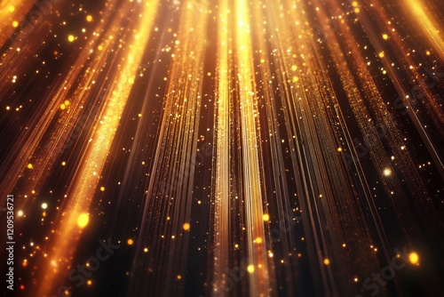 A vertical AI illustration of golden glitter particles flowing down on a black background, designed to convey the feeling and atmosphere associated.
