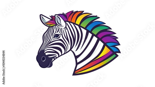 zebra, mascot, logotype, rainbow, colours, vector, flat, design, playful, fun, vibrant, cartoon, animal, colourful, stripes, cheerful, branding, illustration, isolated, white, background, artistic, creative, character, eye-catching, youthful, friendly, modern, dynamic, professional, joyful, imagery, uniqueness, whimsical, appealing, graphic, style, commercial, bold, contemporary, bright, entertainment, delightful