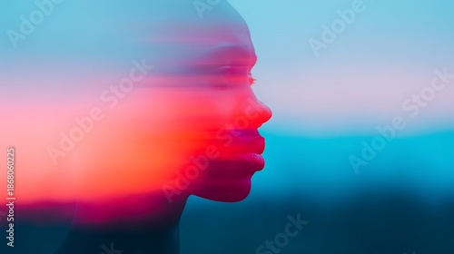 abstract, portrait, vibrant, profile, colours, serenity, visual, imagination, harmony, surreal, inspiration, silhouette, peaceful, artistic, expression, allure, mood, enchantment, uniqueness, contemporary, creativity, illusion, soft, captivating, atmosphere, emotion, tranquil, face, photo, blur, light, dreamlike, gradient, modern, art, scene, design, scenery, beauty, aesthetic, colorfulness