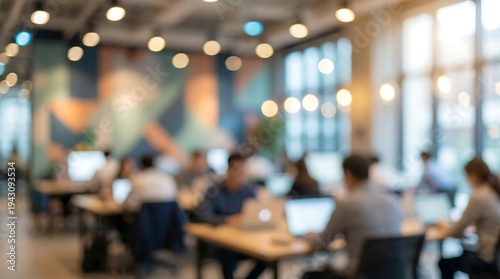 office, blurred, people, working, tied-up, modern, collaboration, teamwork, business, corporate, dynamic, productivity, employee, staff, startup, technology, computer, laptop, desk, bright, light, interior, contemporary, urban, professional, company, corporate culture, innovation, creativity, bustling, downtown, efficiency, communication, concentration, focused, bustling, vibrant, energy, communal, digital, wallpainting, artistic, hip