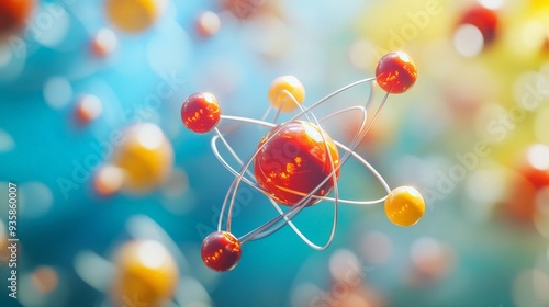 A vibrant and detailed representation of an atomic structure model, displaying colorful atoms connected by orbits, symbolizing scientific concepts of matter and molecular interactions.