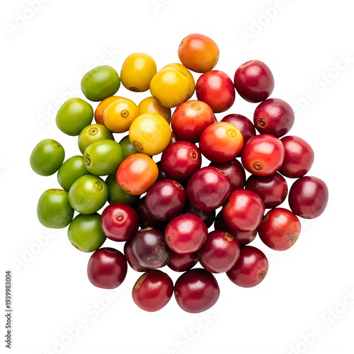 A vibrant assortment of fresh grapes in various colors and sizes isolated on transparent background