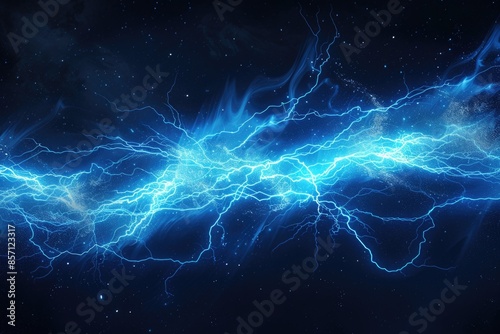 A vibrant blue lightning bolt striking against a dark, featureless backdrop