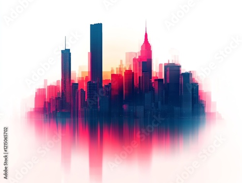 A vibrant city skyline at sunset, blending colors for a stunning visual effect.