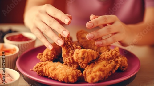 indulgence, savour, hunger, taste, enjoyment, mealtime, finger food, casual attire, craving, colourful, temptation, chicken, fried, fast food, dining, dinner, snack, appetence, greasy, tasty, goodness, juicy, crispy, hot, spicey, dip, sauce, meal, delicious, home cooking, comfort food, take out, dish, eatery, canteen, cafeteria, serving, feast, celebration, epicure, plate, tableware