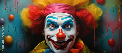 A vibrant clown with a mischievous gaze isolated pastel background Copy space