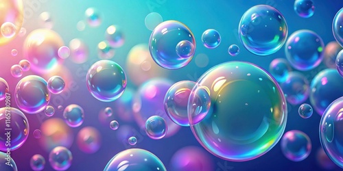 A vibrant collection of iridescent soap bubbles floating against a soft blue and purple background, capturing the fleeting beauty of childhood wonder.