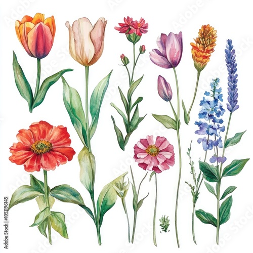 A vibrant collection of spring flowers a watercolor illustration celebrating nature's beauty