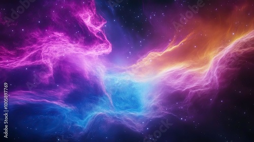 A vibrant cosmic scene featuring swirling colors of pink, blue, and orange, symbolizing the beauty of the universe.