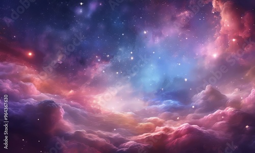 a vibrant, cosmic scene with a starry night sky, colorful clouds, and a multitude of twinkling stars.