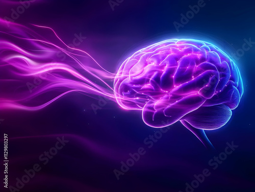 A vibrant depiction of a brain with colorful waves, symbolizing creativity and mental energy in a dynamic way.