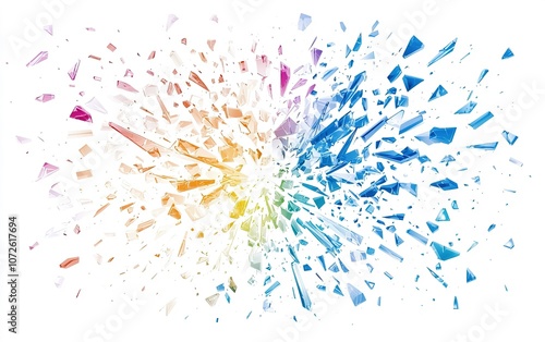 A vibrant explosion of colorful glass shards scattering in various directions, creating a dynamic visual effect