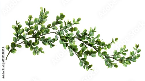 A vibrant green branch of boxwood leaves elegantly displayed against a white background, perfect for design use
