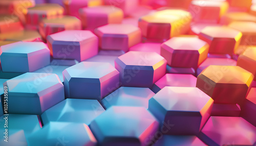 A vibrant hexagonal pattern showcasing a blend of blue and pink colors, creating a modern and dynamic abstract design.