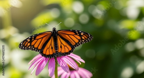butterfly, insect, nature, garden, flower, pink, orange, black, wing, delicate, graceful, beauty, vibrant, colourful, summer, spring, outdoors, wildlife, life, flora, macro, closeup, detail, natural, serene, peaceful, tranquil, ecology, environmental, blossom, green, bokeh, sun, sunlight, light, pollinator, ecosystem, plant, bloom, bright, pattern, antennae, fresh, growth