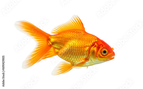 A vibrant orange goldfish swims gracefully in a clear aquatic environment PNG cutout transparent background isolate