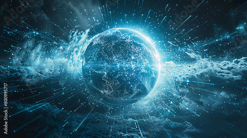 A Vibrant Planet Engulfed in a Web of Digital Sparks.Digital pulse of Earth.