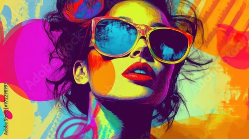 vibrant, missy, colourful, sunglasses, portrait, abstract background, artistic, fashion, creative, playful, stylish, confident, modern art, eclectic, expression, youthful, bright, female, contemporary, pop art, head shot