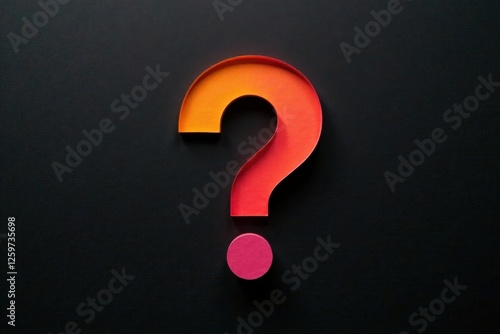 A vibrant question mark crafted from layered paper, featuring a gradient of warm hues against a dark backdrop.
