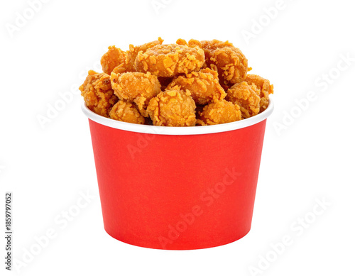chicken, fried, crispy, gold, bucket, red, snack, fast food, take-out, meal, tasty, crunchy, delicious, isolated, background, white, studio, photo, food, cookery, brown, texture, cooked, dish, poultry, nugget, portion, serving, pile, heap, bowl, paper, container, appetising, image, macro, fresh, mealtime, lunch, dinner, party, picnic, event, celebration, share, eat, small, morsel