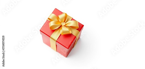 A vibrant red gift box adorned with a golden bow, isolated on a pure white background, present, christmas