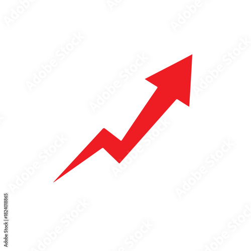 A vibrant red zigzag arrow, dynamically pointing upwards and to the right, powerfully symbolizes rapid growth, significant progress, and energetic forward momentum, isolated on