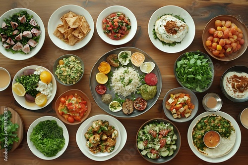 A vibrant spread of various dishes showcasing diverse flavors and ingredients.