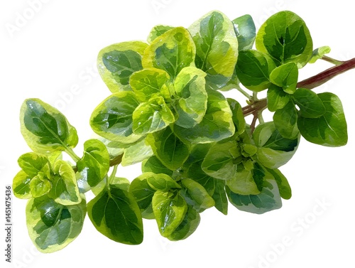 oregano, herb, variegated, leaf, green, yellow, plant, sprig, cooking, food, ingredient, spice, culinary, botanical, nature, garden, foliage, fresh, healthy, aromatic, favor, mediterranean, cookery, kitchen, organic, natural, vegetable, diet, healthy eating, aromatherapy, essential oil, wellness, photo, isolated, white background, closeup, macro, texture, pattern, design element, illustration