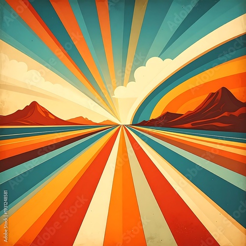 colourful, vibrant, ray, landscape, stylised, sun, mountain, abstract, art, design, illustration, pattern, stripes, radiant, energetic, bright, sunny, scenic, view, horizon, cloud, sky, nature, scenery, beam, light, explosion, many-coloured, artistic, creative, futuristic, hallucinogen, surreal, optimistic, hopeful, tranquil, beautiful, captivating, eye-catching, graphic, stylised, mesmerizing, resplendent, shimmering, sparkling